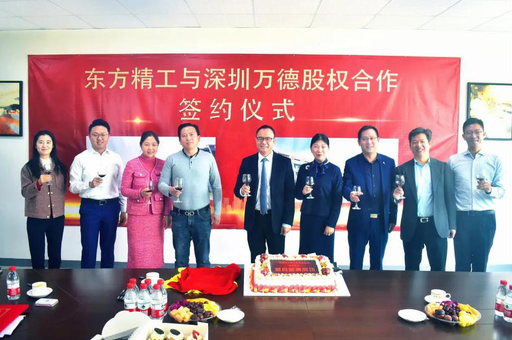 2022年2月15日11時18分,深圳萬德與東方精工集團正式簽署股權合作協議,簽約儀式圓滿成功。本次合作,通過增資及股權合作的方式,深圳萬德將與東方精工集團攜手并進,強強聯合共創佳績。雙方在深圳萬德深圳會議室完成了合作協議的簽署。